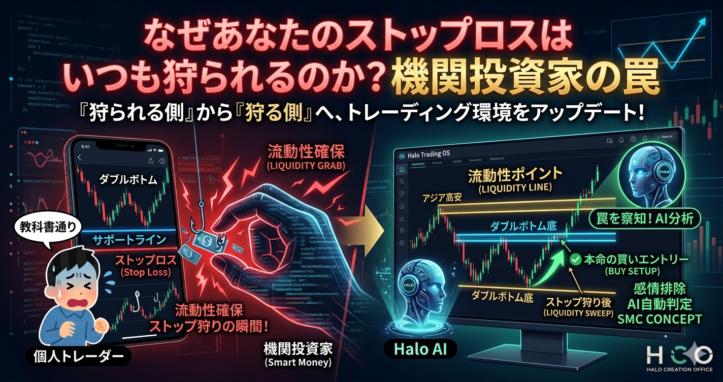 当事務所 Halo Creation Office が開発した 『Halo Trading OS』 は、まさにこの機関投資家の動きを個人トレーダーが察知するために作られました。