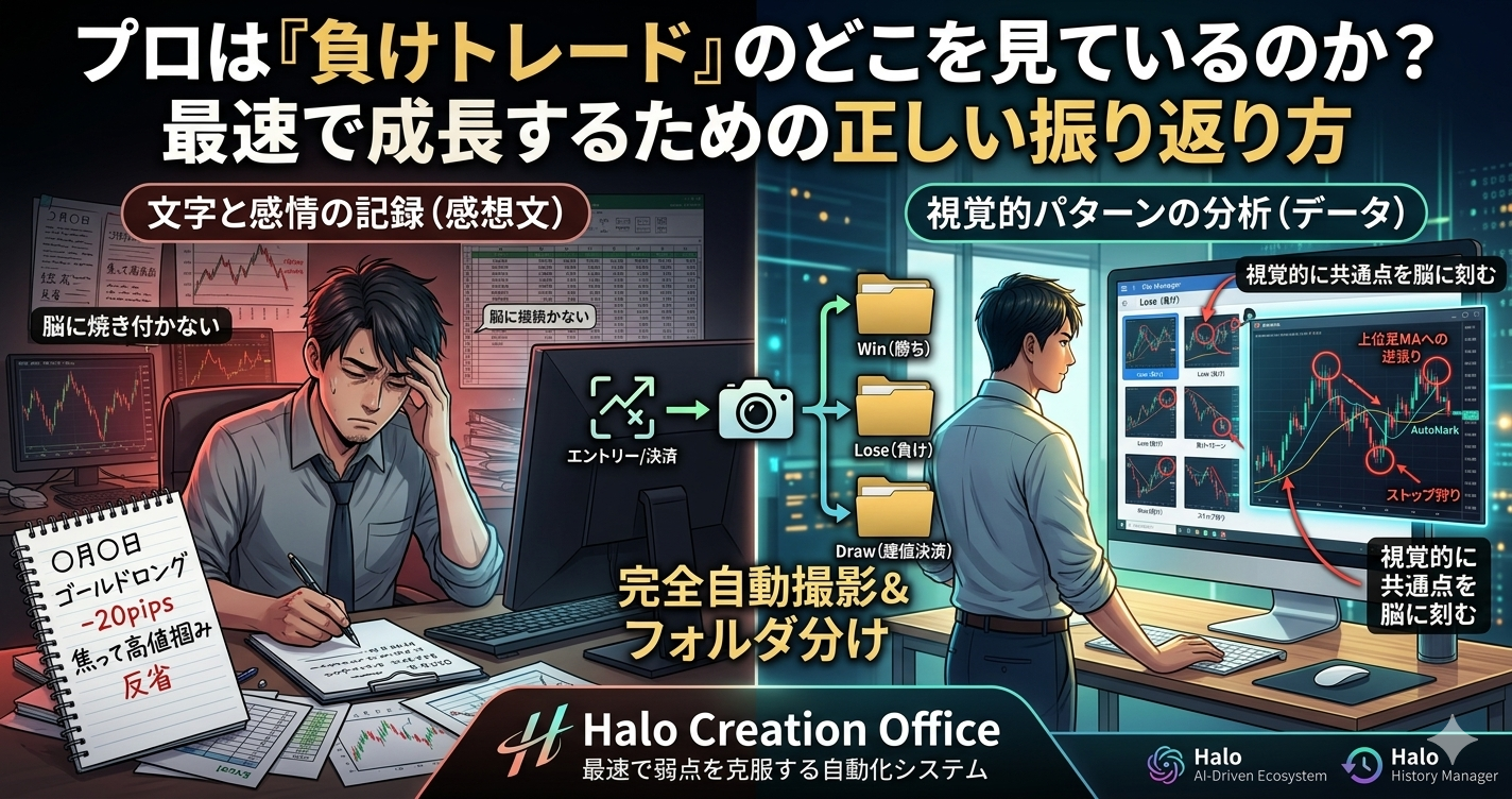 今回は、プロのアルゴリズム開発者の視点から、「プロは負けトレードの『どこ』を見て、どうやって最速で弱点を克服しているのか?」という、本物の振り返り術を公開します。