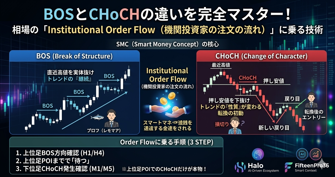 BOSとCHoCHの本質、そしてマルチタイムフレーム(複数時間足)を跨いだ『Institutional Order Flow』の概念。