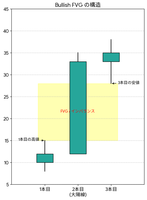 つまり、FVGとは単なるローソク足の隙間ではなく、「買い注文(または売り注文)しか存在しなかった、市場のバランスが完全に崩れた異常な真空地帯(Imbalance)」なのです。
