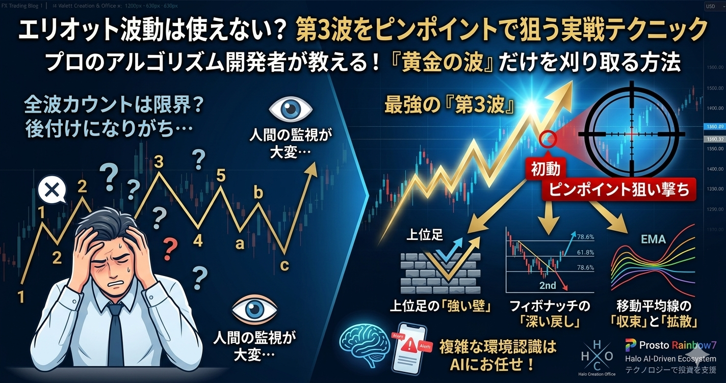 今回は、アルゴリズム開発者の視点から、複雑なカウントを捨て、実戦で利益をもたらす「第3波の美味しいところだけを切り取るテクニック」を解説します。