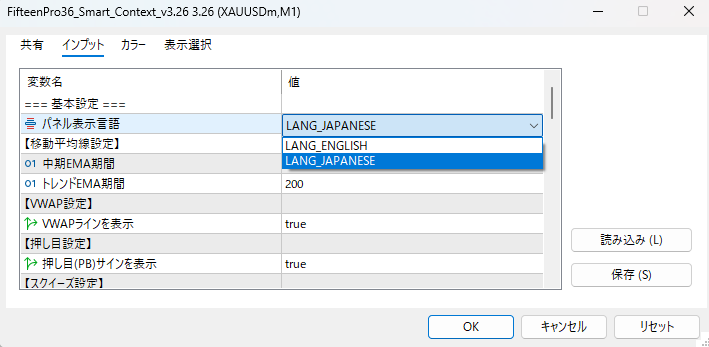 納品された製品フォルダに含まれる FifteenPro36 Smart Context.ex5 を、MT5のデータフォルダ内に配置します。