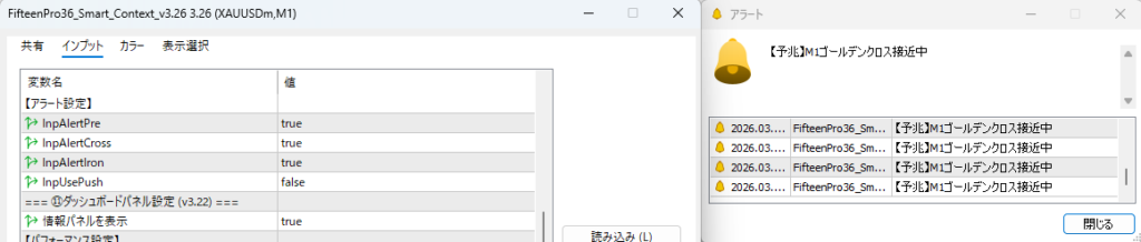 true にすると、クロスが確定する前の「手前」でアラートを鳴らします。早めに準備したい場合に有効です。