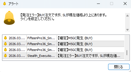 A. ステルス注文により、業者のサーバーには「どこにストップロスを置いているか」という情報が一切送信されません。そのため、あなたの注文をピンポイントで狙った「個別のストップ狩り」は物理的に不可能になります。ただし、市場全体の急変動(フラッシュクラッシュ等)によるスプレッド拡大はステルスでも防げないため、パラメータの「フェイルセーフSL」を必ず設定して口座破綻を防いでください。