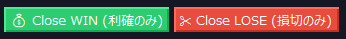 🎯 Avg TP(平均建値+利幅スナップ) :「とりあえず全体で+ で確実に逃げ切りたい」。平均建値を基準にした一括利確ラインを、ワンクリックで瞬時にスナップさせます。○○pips(設定) 💰 Close WIN / ✂️ Close LOSE :入り乱れた玉の中から、「含み益の玉だけ」「含み損の玉だけ」をワンクリックで一瞬にして整理(全決済)します。