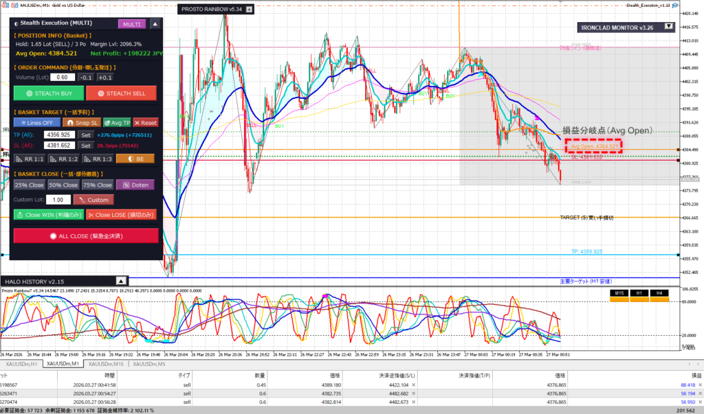 毎朝のコピペ10秒で地雷原(制限時間)を可視化し、安全な時間帯だけで戦える。ステルス注文により、ストップ狩りの標的から完全に外れる。 複数のポジションを持っても「Avg Open」ラインを見ながら、軍師のように冷静に一括撤退の指示を出せる。 「資金管理のプロ」と全く同じ土俵で戦えるようになる。
